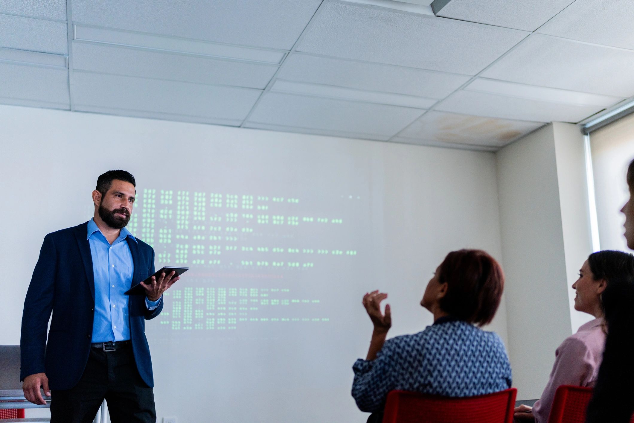 Workshop presentation with projector and audience
